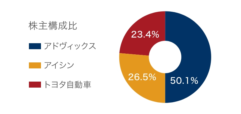 当社は、アドヴィックス、アイシン、トヨタ自動車といったトヨタグループ企業を株主として、安定した株主構成と経営基盤を持つ会社です。このような強いつながりの中で、私たちは“ものづくり”に取り組み、アイシングループの一員として、グループ中でも成長領域と位置付けられるブレーキ事業を、株式会社アドヴィックスとともに牽引しています。今後もグループのシナジーを最大限に活かし、信頼されるものづくりを通じて、ブレーキのトップメーカーを目指してまいります。
