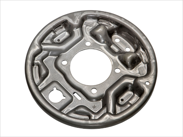 As a supplier specializing in automotive brake components, we boast world-class levels in both the number of products handled and production volume. This abundant production capability is supported by on-site capabilities that respond to changing customer needs with high quality and speed. In recent years, we have also addressed the electrification of brake products, responding quickly to new needs. Furthermore, through the introduction of a 1,200t servo stamping machine at our head office factory, we have established a production system capable of high-volume, high-precision press processing of thick plate materials.