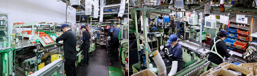 早出残業手当、休日出勤手当、時間帯手当、通勤手当、家族手当、家賃補助 等 各工場に社員食堂あり(カフェテリア方式)、食堂利用時、給食費補助あり |